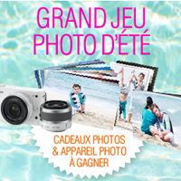 Ainsi, jusqu’au 20 août 2012 inclus, participez au grand jeu photo de l’été ! Le principe est simple : Vous avez le choix entre 2 jeux. Soit le QUIZZ où vous devrez répondre à 5 questions sur la thématique Photo, soit la PLAGE où vous aurez à retrouver 7 objets photos sur la plage (photo). Ce que vous pouvez remporter ? Deux types de lots : soit un lot de 30 tirages photo ou un bon d’achat de 5€ en instant gagnant, soit la participation au tirage au sort !